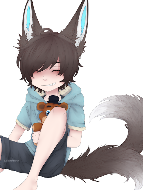 His design is simple but adding the details to his tails and ears as well as shading the hair is a challenge. Sorin is holding a Freddy Fazbear plush because that is his comfort character, he actually has several Fredbear plushies because his mom and uncle spoil him(terrible).